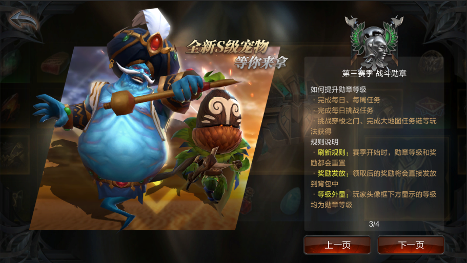 全新战斗勋章奖励等着大家来拿:异域风情时装、传奇品质背饰、赛季专属SSS宠物以及全新雇佣兵等。