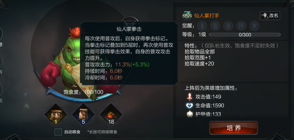每次使用普攻后,自身获得拳击标记,当拳击标记叠加到5层时,再次使用普攻技能可获得拳击效果,自身的普攻攻击力提升。