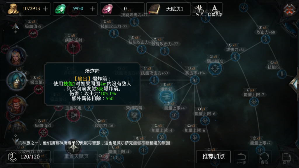 在新版本的天赋界面中,还增加了“推荐天赋”选项,有选择困难症的小伙伴,再也不用担心面对庞大的天赋星图不知所措了。当然,“推荐天赋”主要还是为新手玩家服务,资深玩家还是要靠自己的体验,选择合适自己的build。