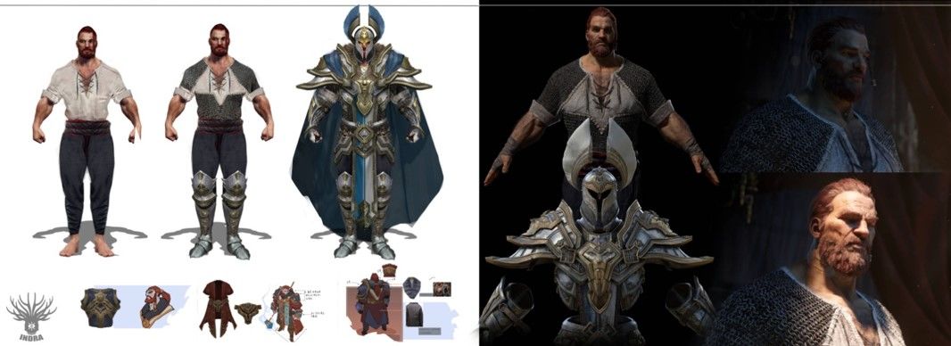 》的英雄模型都是用次世代流程制作,模型的开始阶段设计师拿到原画的时候,首先要分析原画,确定设计、造型、材质之后再去制作。